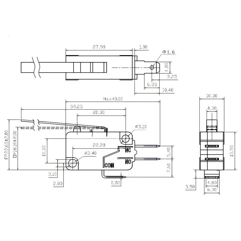 Millisecond-precieze triggering: Maakt gebruik van een snel mechanisme met klikmechanisme met een korte slag van 0,5-1,6 mm en een instelbare bedieningskracht van 0,25-4N, waardoor een snelle en vertragingsvrije reactie wordt geboden om "valse triggers" effectief te voorkomen. Geschikt voor uiterst nauwkeurige scenario's zoals deurbedieningen voor magnetrons en industriële sensoren.
