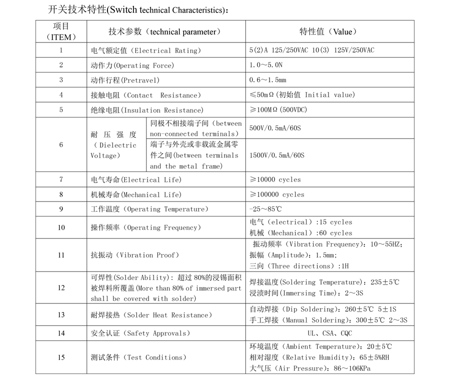 | 8 | Bestand tegen spanning: tussen terminal en terminal 500V/60S/0,5mA; |