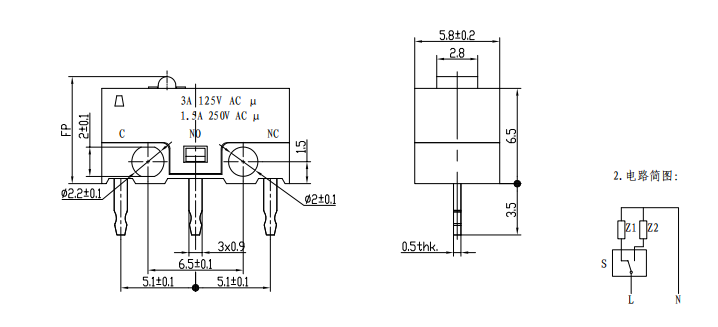 | 1 | Elektrisch vermogen: 1A/3A 250VAC |