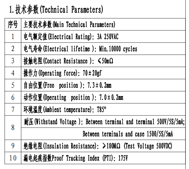 Parameter microschakelaar (specificatie)